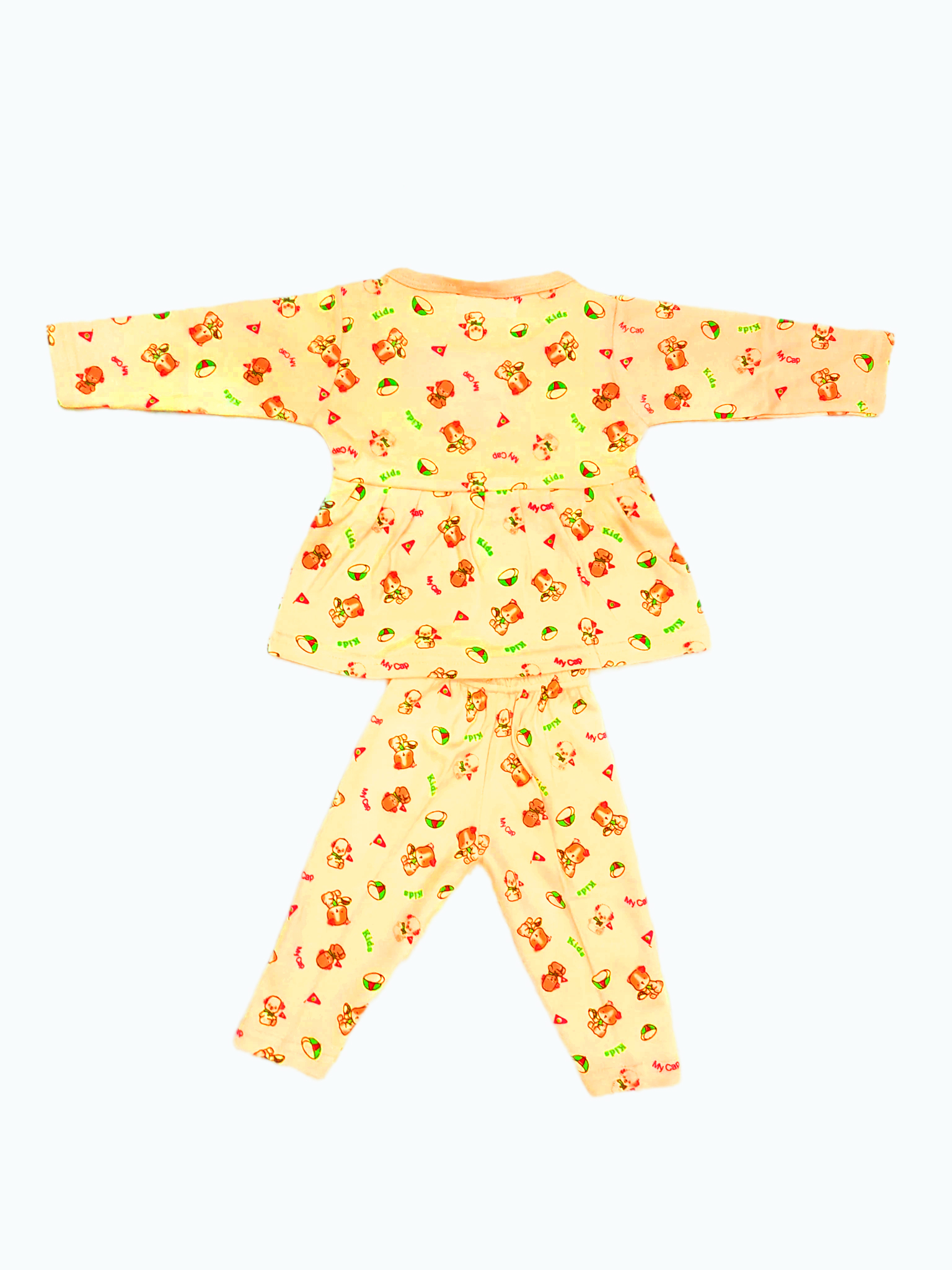 Peach Teddy Bear Frock and Pant Sethear Cloud Baby Frock